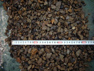 4号砕石 30〜40ミリ位 13ミリ位・20ミリ位もあります。 1平米 5センチ厚¥1,200